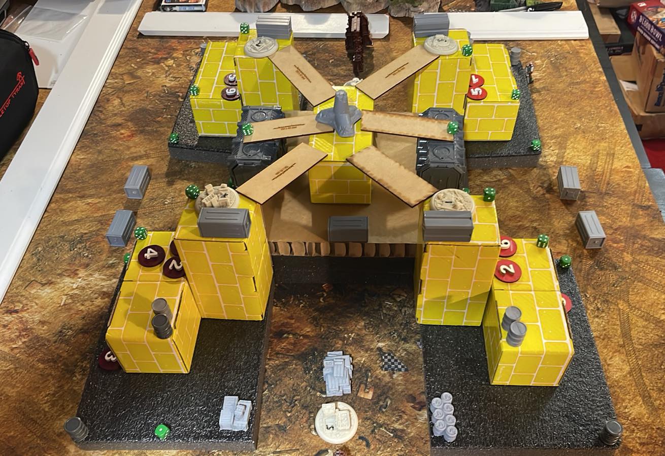 - Small footprint, big body count. Designed for vertical 3x3 boards but the crowd will cheer for whatever you've got.