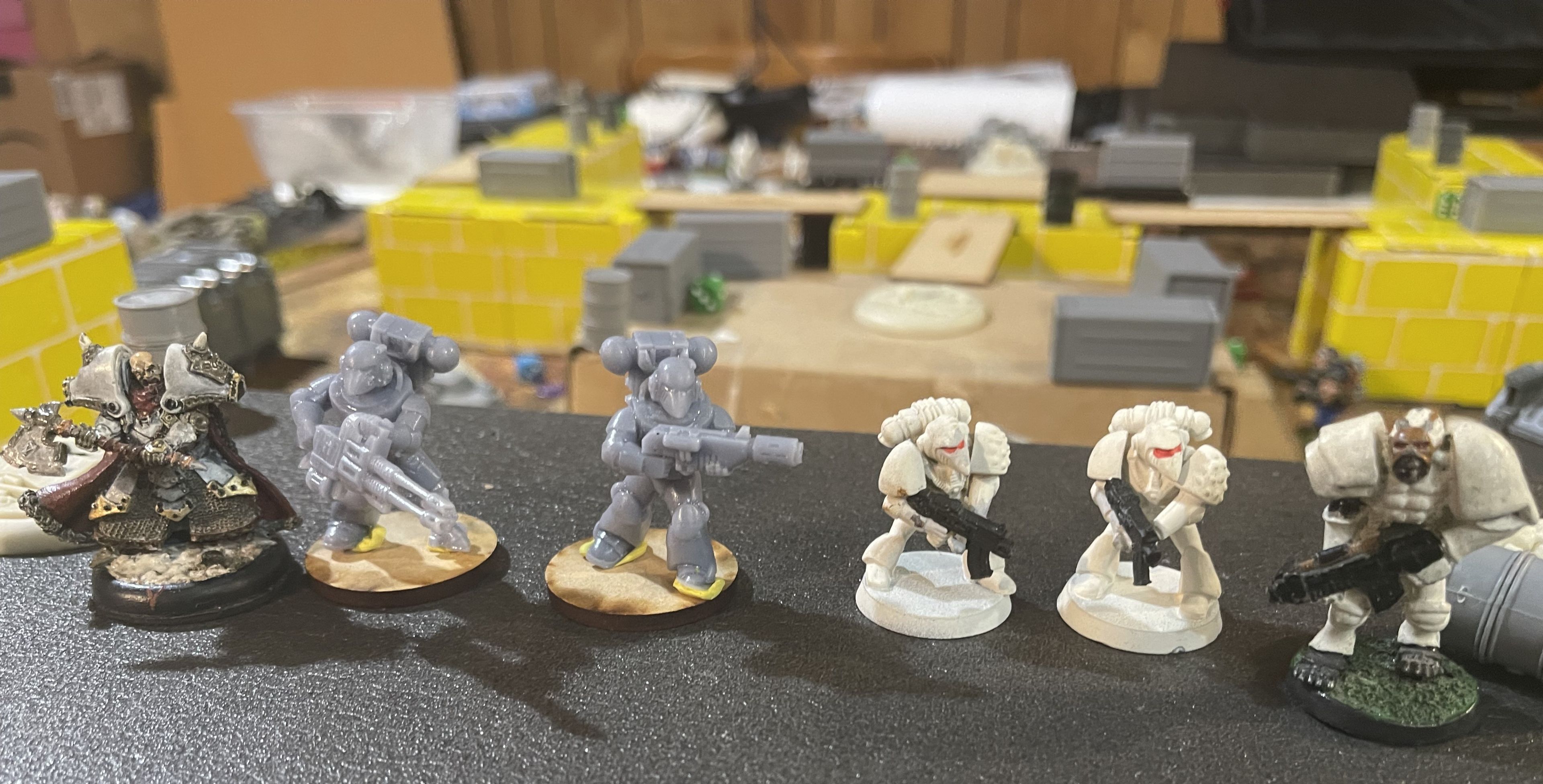 - Use whatever minis you have (~6 per side; 28-32mm scale is best, but they all die the same)