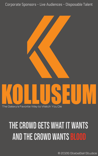 Kolluseum is a tabletop skirmish game where 1-2 players manage small teams of Talent competing for glory and market share, in the galaxy's premier bloodsport. It's fast, tactically rich, and set in an absurd corporate universe where every kill is content.